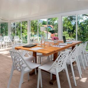Sobre la solidez de la construcción, original de 1950, en piedra de granito hemos creado un espacio diáfano, ligero y moderno: un lienzo en blanco en el que alojar tu reunión, tu sesión de team building, conferencia, presentación de tu producto, retiro de yoga, pop up store… ¿qué se te ocurre?