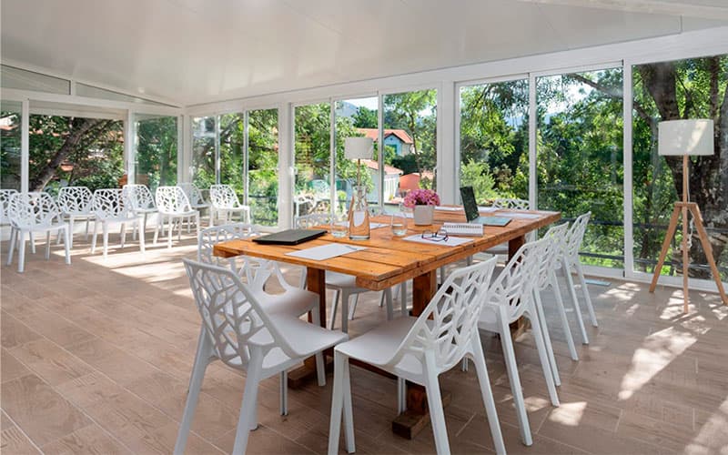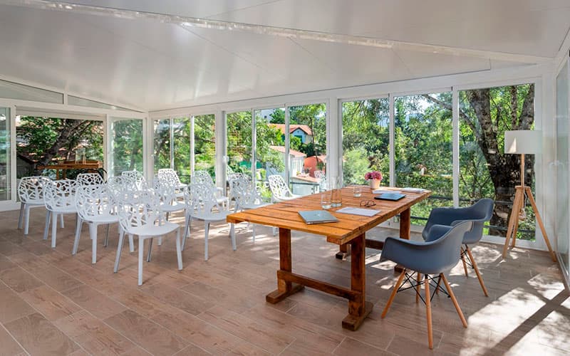 Sobre la solidez de la construcción, original de 1950, en piedra de granito hemos creado un espacio diáfano, ligero y moderno: un lienzo en blanco en el que alojar tu reunión, tu sesión de team building, conferencia, presentación de tu producto, retiro de yoga, pop up store… ¿qué se te ocurre?